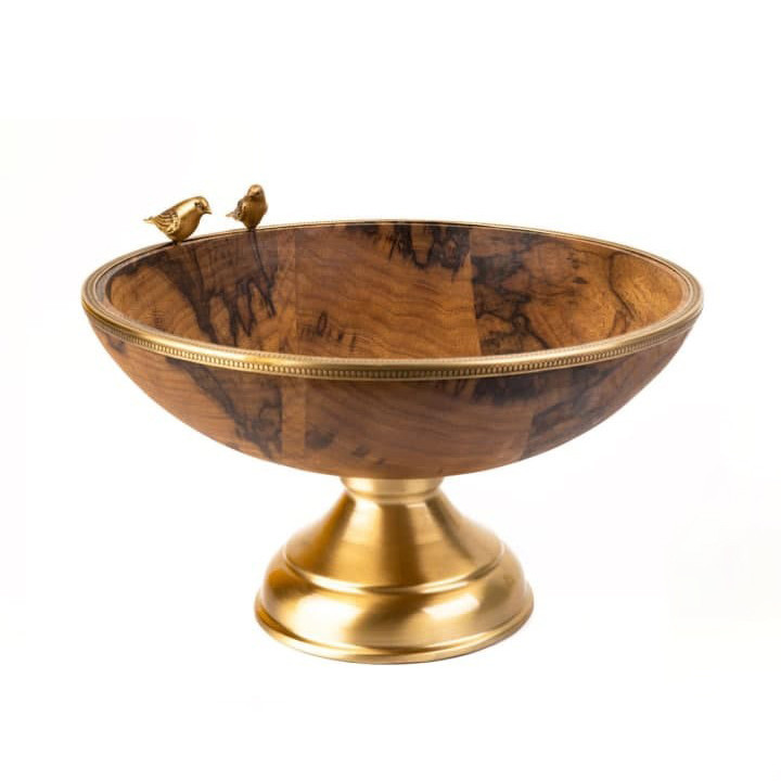 محصولات پذیرایی چوبی گلدکیش با استفاده از مرغوبترین نوع چوب و آلیاژ برنج تولید و عرضه میشود. استفاده از تزئینات برنجی، در عین حفظ سادگی چوب، ظروف را تجملیتر کرده که با هر نوع ذوق و سلیقه ای سازگاری دارد؛ به همین دلیل است که محصولات چوبی، در رده محبوب ترین و پر فروش ترین کالاهای این مجموعه قرار میگیرد. در این محصولات از بهترین نوع چوب و با کیفیتترین رنگ ارگانیک جهان استفاده شده؛ از همین رو موفق به دریافت استانداردهای بین المللی گردیده است. پوشش چوب با این نوع رنگ، آن را در مقابل شستشو مقاوم کرده و مانع برخورد مواد غذایی با چوب میشود.طرح گلدن برد گلدکیش ساخته شده از چوب با متعلقات برنجی به شکل پرنده است. دور تا دور ظرف از نوعی رینگ از جنس برنج برای استحکام و زیبایی بیشتر، استفاده شده است. این طرح شامل ست کامل پذیرایی اعم از میوه خوری، شیرینی خوری، آجیل خوری، اردوخوری، کیک خوری و… در ابعاد و اشکال مختلف است.