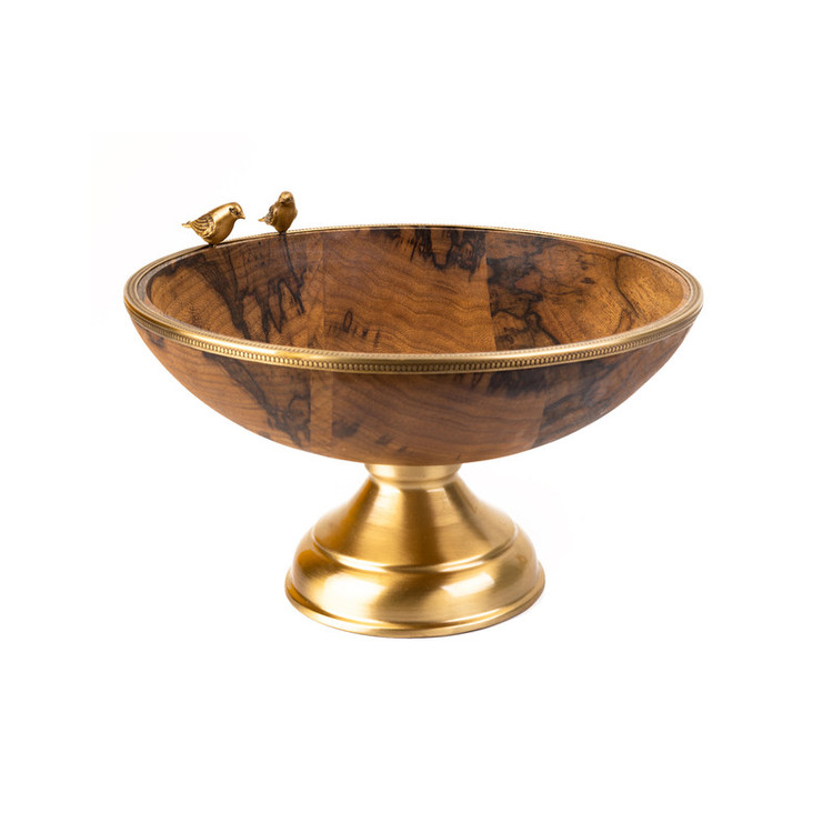 محصولات پذیرایی چوبی گلدکیش با استفاده از مرغوبترین نوع چوب و آلیاژ برنج تولید و عرضه میشود. استفاده از تزئینات برنجی، در عین حفظ سادگی چوب، ظروف را تجملیتر کرده که با هر نوع ذوق و سلیقه ای سازگاری دارد؛ به همین دلیل است که محصولات چوبی، در رده محبوب ترین و پر فروش ترین کالاهای این مجموعه قرار میگیرد. در این محصولات از بهترین نوع چوب و با کیفیتترین رنگ ارگانیک جهان استفاده شده؛ از همین رو موفق به دریافت استانداردهای بین المللی گردیده است. پوشش چوب با این نوع رنگ، آن را در مقابل شستشو مقاوم کرده و مانع برخورد مواد غذایی با چوب میشود.طرح گلدن برد گلدکیش ساخته شده از چوب با متعلقات برنجی به شکل پرنده است. دور تا دور ظرف از نوعی رینگ از جنس برنج برای استحکام و زیبایی بیشتر، استفاده شده است. این طرح شامل ست کامل پذیرایی اعم از میوه خوری، شیرینی خوری، آجیل خوری، اردوخوری، کیک خوری و… در ابعاد و اشکال مختلف است.