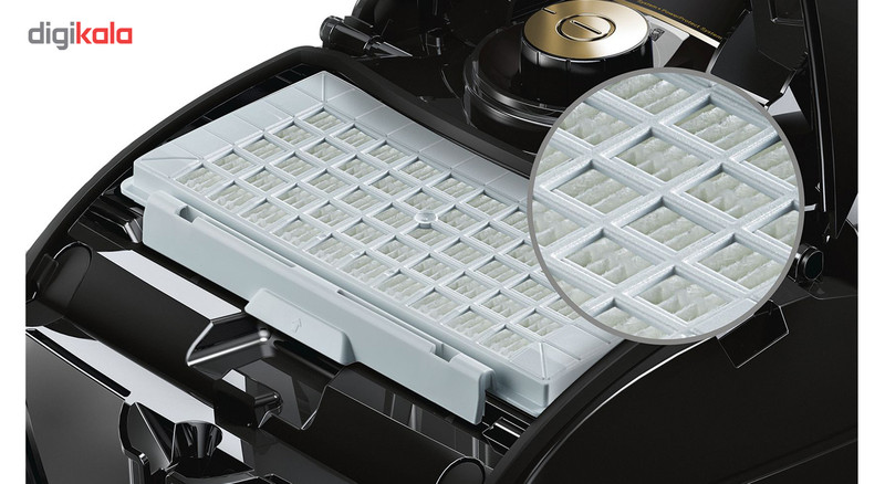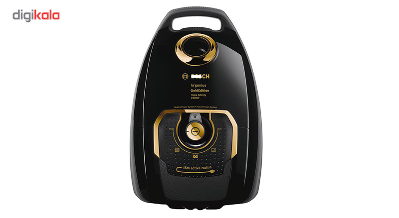 موتور جاروبرقی BGL8GOLDIR بوش بسیار قدرتمند و کم صدا میباشد و توان مصرفی آن 2200 وات است. تکنولوژیIn ‘genius Gold Edition که در این جاروبرقی تعبیه شده، یک تمیزی فوقالعاده را برای شما به ارمغان میآورد. سیستم Power Protect طراحی شده توسط شرکت سازنده با60 درصد قدرت مکش بیشتر باعث میشود تا با جریان هوای عالی، برای عملکرد تمیز کردن، شما جاروکشی پرقدرتی را داشته باشید، همچنین وجود این سیستم باعث افزایش مکش جاروبرقی در زمان نیمه پر بودن کیسه می گردد. سیستم Quattro Power عملکرد بسیار عالی در مکش دارد که باعث نتایج عالی در جارو کردن با مصرف انرژی کمتری میشود. این جاروبرقی دارای موتور کمپرسور HiSpin با تیغه های ایرودینامیک و کاملا کالیبره یکی از کم مصرف ترین جاروهای موجود در بازار است. فیلتر این جاروبرقی هپا (HEPA) میباشد که با ویژگی بالا برای عملکرد بهتر، تمام گرد و غبار را به خوبی به خود جذب می کند و مانع از پخش شدن در محیط میشوند و هوای خروجی 99 درصد بدون ذرات آلرژیزا هستند. همچنین این فیلتر قابل شستشو میباشد. پارویی این مدل جاروبرقی بوش مجهز به Air Bumper است که از ایجاد خطوط سیاه روشن روی مبلمان و از ایجاد خط و خش روی سطوح جلوگیری میکند. حجم کیسه گرد و غبار این مدل جاروبرقی 5 لیتر میباشد که این حجم باعث میشود شما ماه ها از یک کیسه استفاده کنید و در هزینه خرید مداوم کیسه صرفهجویی کنید. پاکت مصرفی این مدل جاروبرقی بوش تیپ G میباشد. وجود 5 عدد کیسه اضافی داخل جعبه دستگاه و برخورداری از شلنگ کنفی از دیگر مزایای این جاروبرقی بشمار میآید. لوازم جانبی همراه جاروبرقی شامل 3 ابزار حرفهای میباشد که شامل برس اثاثیه، برس بسیار بلند درزها و برس سری حرفهای که مجهز به سیستم Silence Sound است که باعث عملکرد بیصدا و آرام میباشد. لوله خرطومی این جاروبرقی بسیار باکیفیت است و به راحتی پاره نمی شود و تغییر شکل نمیدهد. این جاروبرقی بوش با دارا بودن لوله پلاستیکی تلسکوپی خود مناسب هر کاربری میباشد زیرا میتواند به راحتی لوله جاروبرقی را بلند و کوتاه کند. دسته این مدل جاروبرقی ارگونومیک میباشد که باعث سهولت در استفاده از آن میشود.