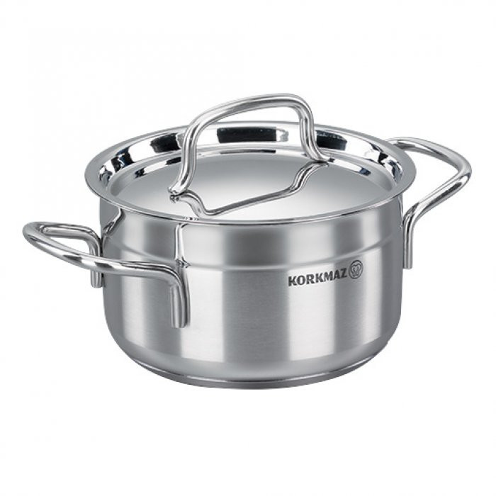 ساخت ترکیه استیل 18/10 کروم نیکل درب استیل کفه دارای سه لایه چدن دسته استیل گنجایش 2.5 لیتر