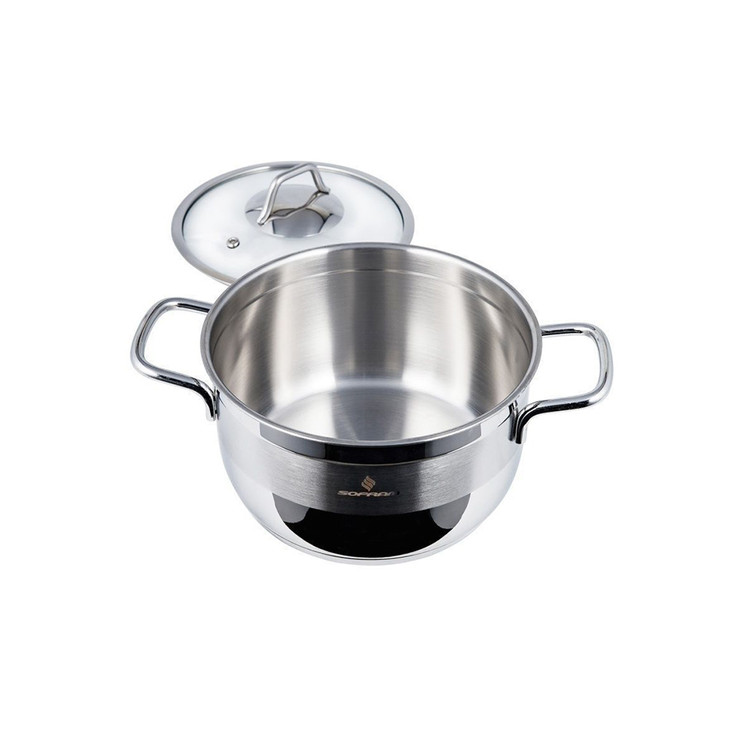 جنس بدنه: استیل نگیر 18.10 به علاوه یک لایه ضخیم چدن در کف قابلمه